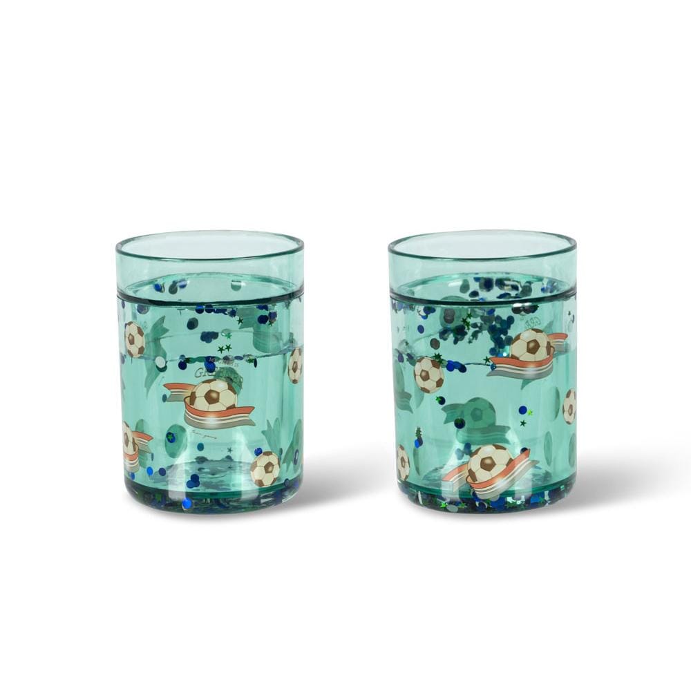 Lot de deux gobelets à paillettes imprimés « Kick It » de Konges Sløjd. Apportez une touche de magie à votre intérieur avec ces gobelets à paillettes. Secouez-les et les paillettes danseront délicatement.
