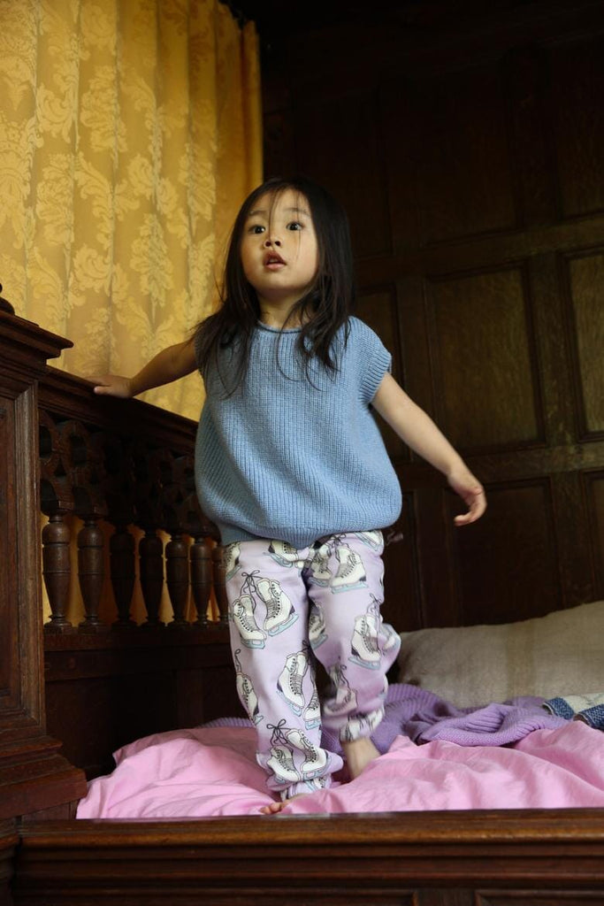 Pull sans manches Harvey bleu clair de Hvid. Tricoté d'une seule pièce, il est donc entièrement sans coutures. Le fil élastique discret du col le rend extensible à l'enfilage et épouse parfaitement le corps. Le bord-côte anglais lui confère une douceur incomparable. Ce modèle présente une coupe plus arrondie que la version bébé et un bord-côte plus large à l'ourlet, créant un look ample. Il s'associe facilement à une chemise ou un chemisier pour une tenue ludique.