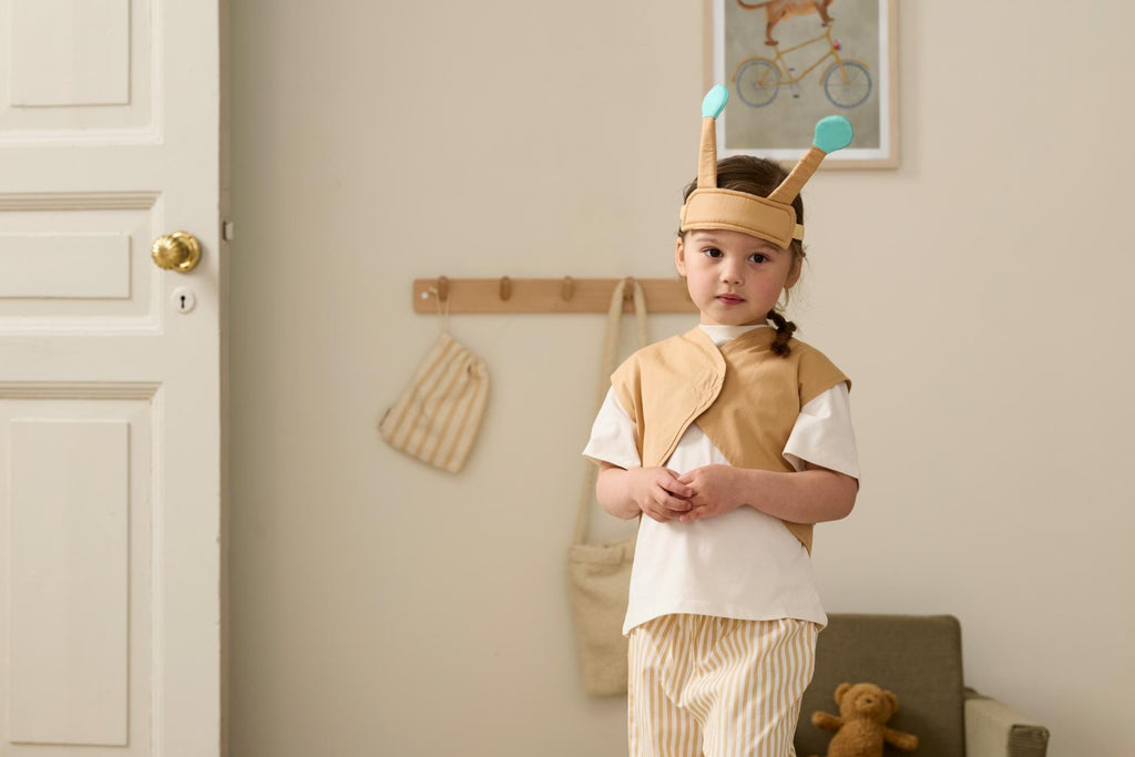 Het kostuum bevat ook een gewatteerde hoofdband met zachte antennes, zodat de kleintjes door de tuin kunnen glijden in echte slakkenstijl (maar misschien een beetje sneller).