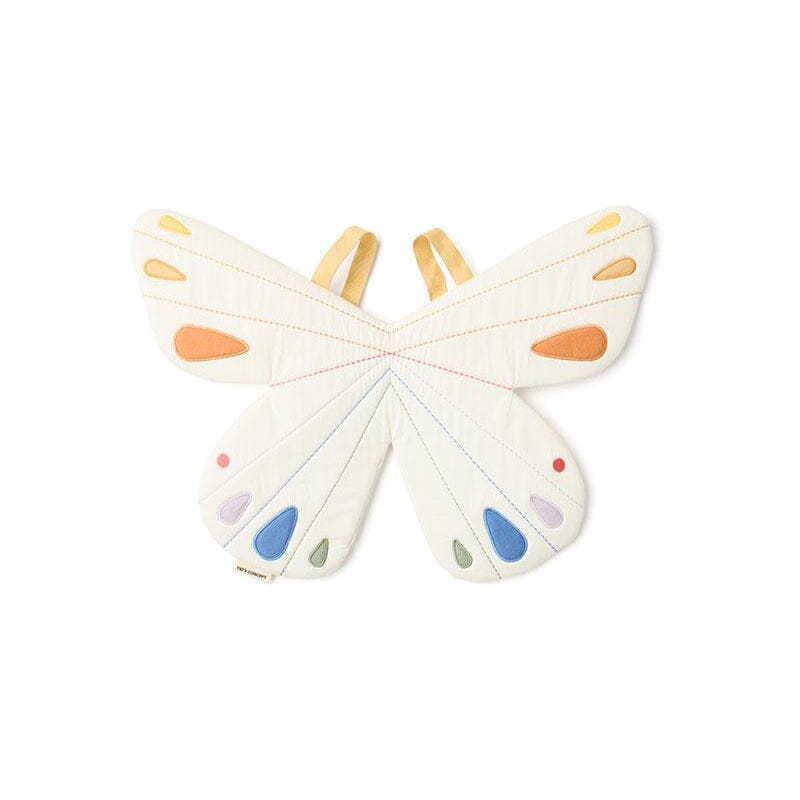 Ces ailes de papillon sont conçues pour être portées dans le dos grâce à des bretelles élastiques, pour un habillage facile et confortable. Elles sont rembourrées pour conserver leur forme pendant le jeu, et les détails brodés ajoutent stabilité et texture.
