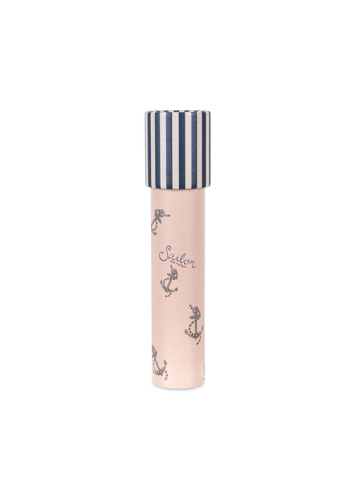 Caleidoscoop in de print Rock my boat van Konges Sløjd. Kijk naar binnen en ervaar de patronen en kleuren die ontstaan door de reflecties van de spiegels.