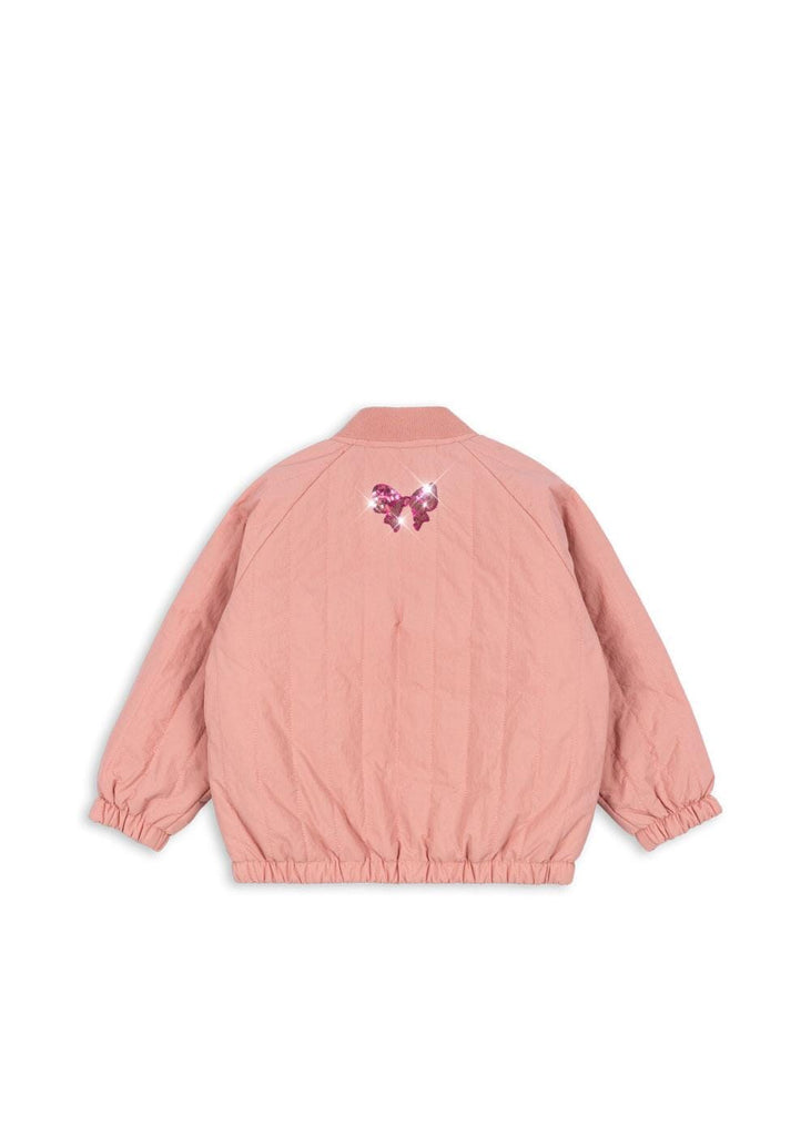 Bomberjas met sequin appliqué van Konges Sløjd. De Juno thermojack is een echte favoriet, met polyester vulling voor effectieve isolatie en een ademende, fluorvrije impregnering die het jack zowel winddicht als waterafstotend maakt.