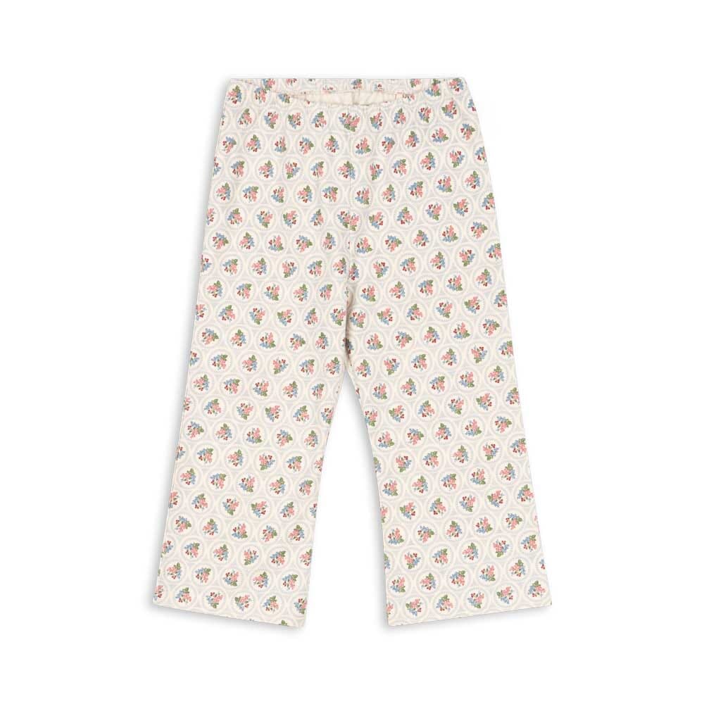 Drey broek in de print Verona blues van Konges Sløjd. Deze zachte, katoenen broek heeft een comfortabele fit en een elastische tailleband.