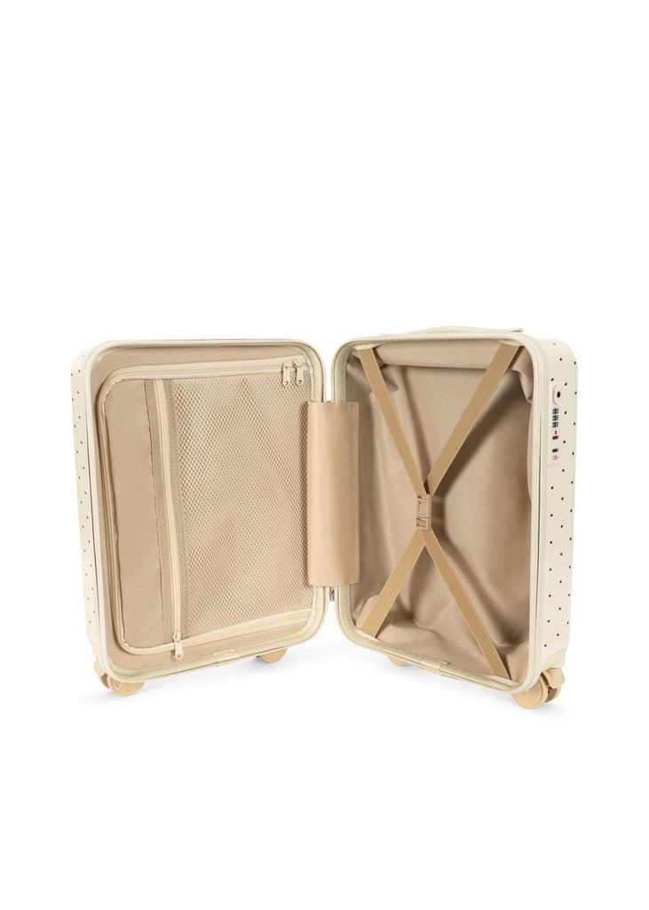 Valise de voyage à pois marine de Konges Sløjd. Prête pour les vacances ! Avec cette valise légère, partez avec style :-)