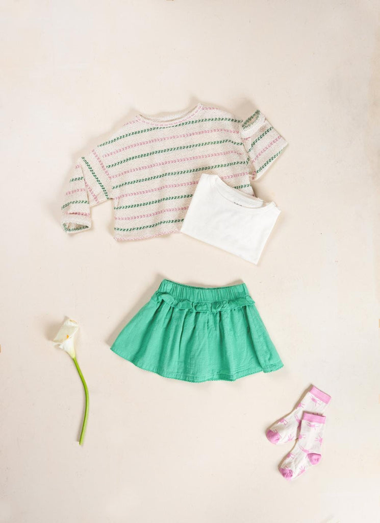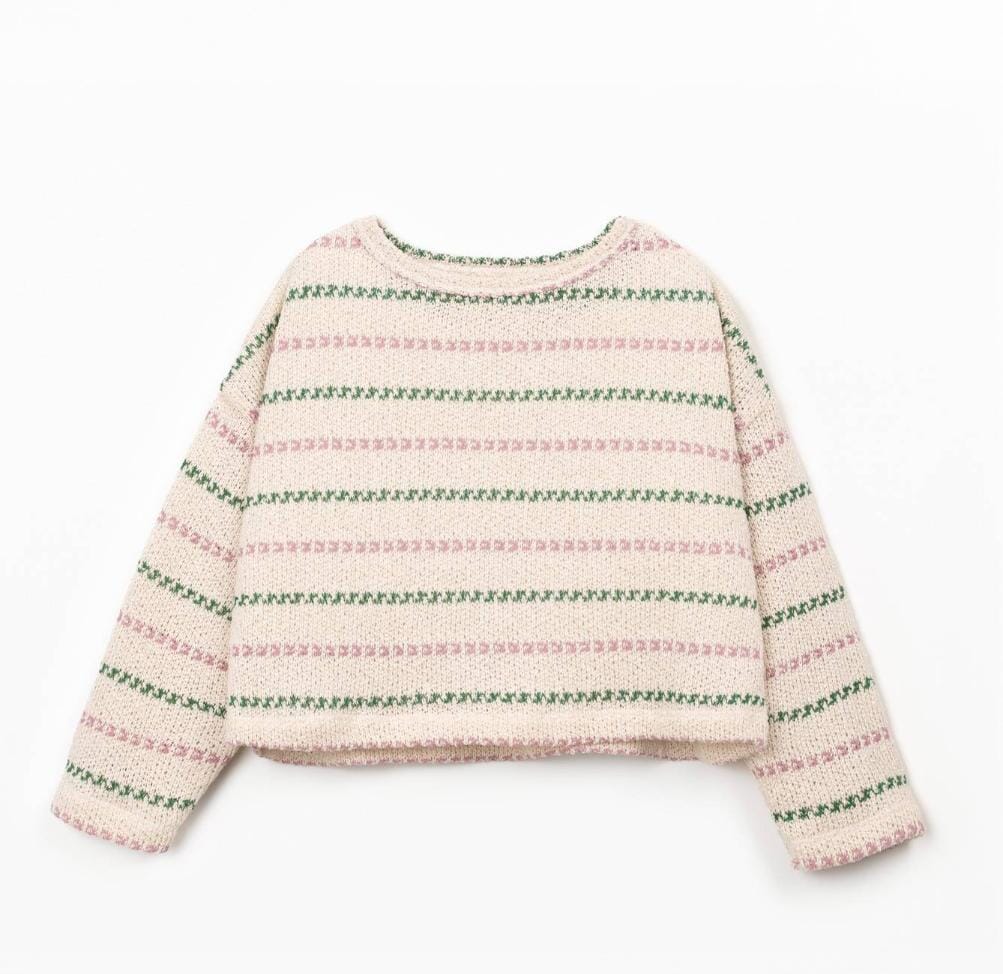 Sweater met roze en groene strepen van Play Up. Dit sweatshirt heeft een ronde halslijn, licht afhangende schouders en driekwartmouwen. Het is gemaakt uit heerlijk zachte, licht getextureerde stof. Het bevat Re(Play)-garen dat afkomstig is van de recycling van Play Up's post-productie afval.