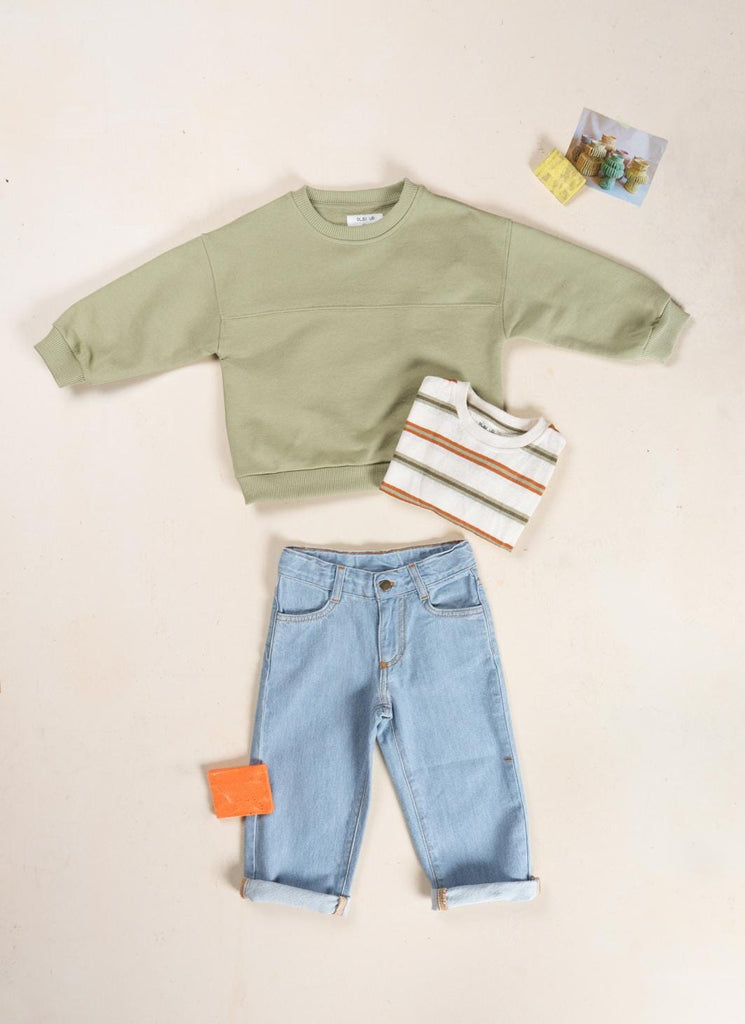 Sweater in khakigroen van Play Up. Dit sweatshirt heeft een heerlijk zachte gemoltoneerde binnenkant. Verder heeft de sweater een ronde halslijn en een decoratieve naad die over de borst loopt. Hij bevat Re(Play)-garen dat afkomstig is van de recycling van Play Up's post-productie afval.