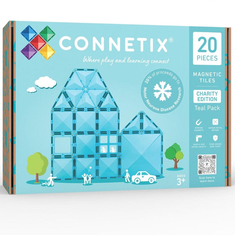 Charity Pack Teal 20 stuks van CONNETIX. Geïnspireerd door toonaangevende onderzoeksprojecten en de kracht van een gemeenschap die samenkomt voor een goed doel, brengt CONNETIX een limited set uit. 20% van de opbrengst wordt rechtstreeks geschonken aan FightMND, een van 's werelds grootste financiers van onderzoek naar motorneuronziekte (MND). Hun doel is om geld in te zamelen en internationale bekendheid te creëren, zodat FightMND veelbelovende wereldwijde onderzoeksprojecten kan blijven uitvoeren, kan werken aan de ontdekking van betere behandelingen, de levenskwaliteit van mensen met MND kan verbeteren en hopelijk ooit een genezing voor de ziekte kan vinden. Met dit initiatief wil CONNETIX zich verenigen als internationale gemeenschap om bewustwording te creëren, hoop te verspreiden en samen op te staan om het Beest te verslaan. Bovendien introduceert het limited edition Charity-pack een NIEUWE turquoise kleur om het CONNETIX Rainbow-kleurenassortiment uit te breiden.
