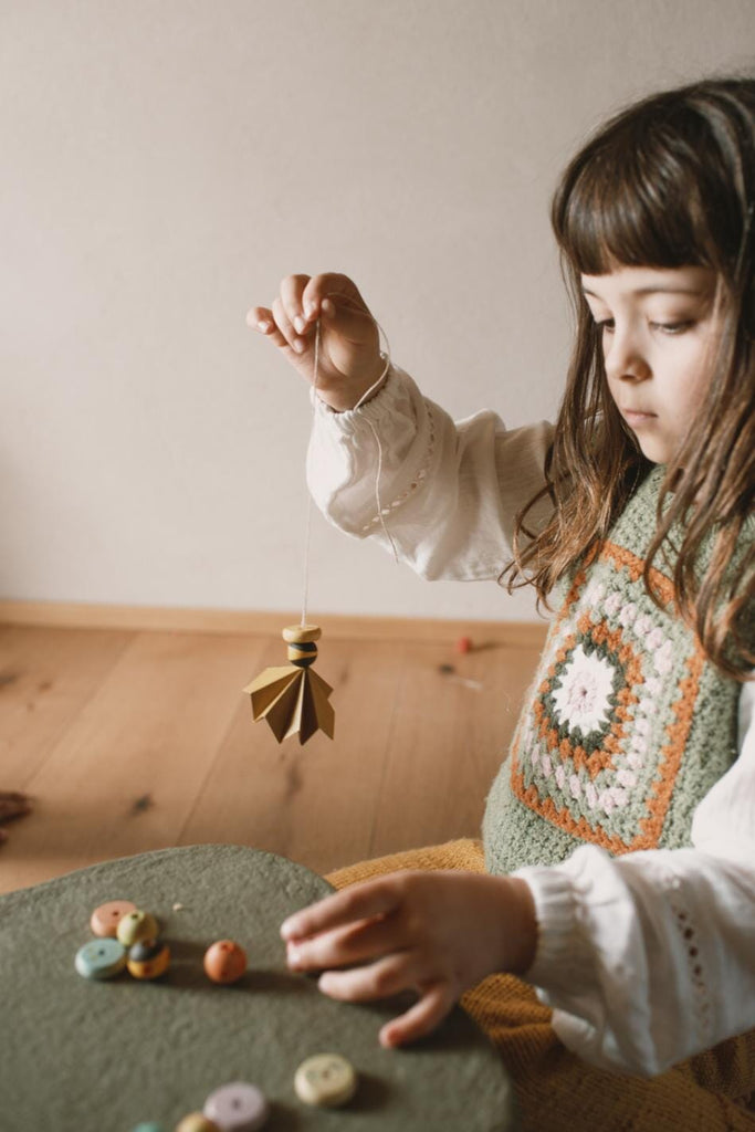Ce calendrier de l'Avent contient plus de 180 pièces en matériaux variés : bois, tissu, fil, laine et bien plus encore. La boîte contient également un livret. À l'intérieur, vous trouverez un cercle en carton pour le compte à rebours, avec une série de petits points que vous découvrirez en ouvrant les cases numérotées chaque jour.