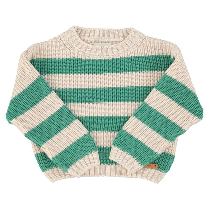 Gebreide trui - Ecru & groene strepen - Piupiuchick