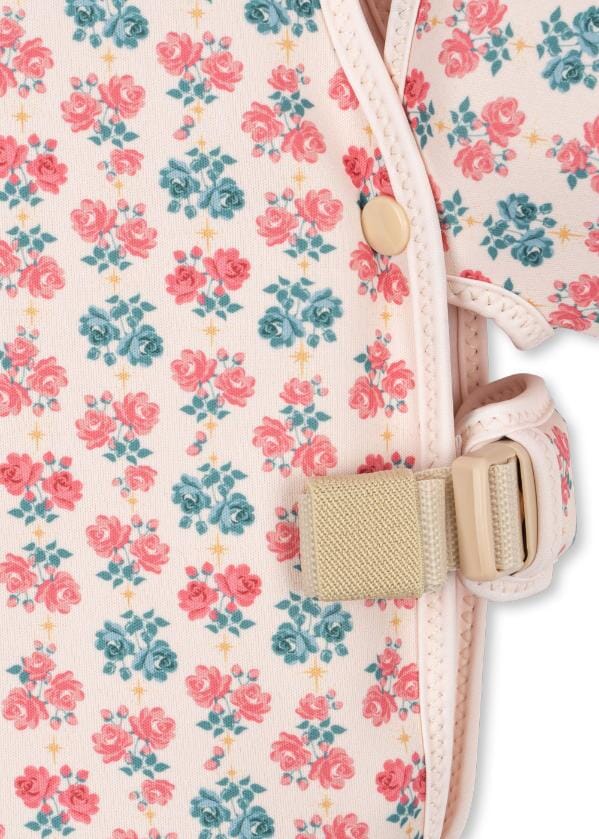 Hollis zwemvest met zwembandjes in de print Lumina Rose van Konges Sløjd. Dit neopreen zwemvest heeft afneembare zwemvleugels, waardoor het perfect is voor kinderen die leren zwemmen. Het vest kan zonder de vleugels gebruikt worden, maar de vleugels mogen niet zonder het vest gebruikt worden.