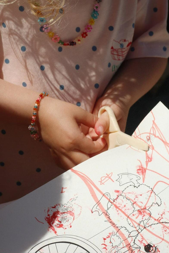 Sieradenset Flower field van Konges Sløjd. Deze set bevat een ketting en een armband met parels in alle kleuren van de regenboog.