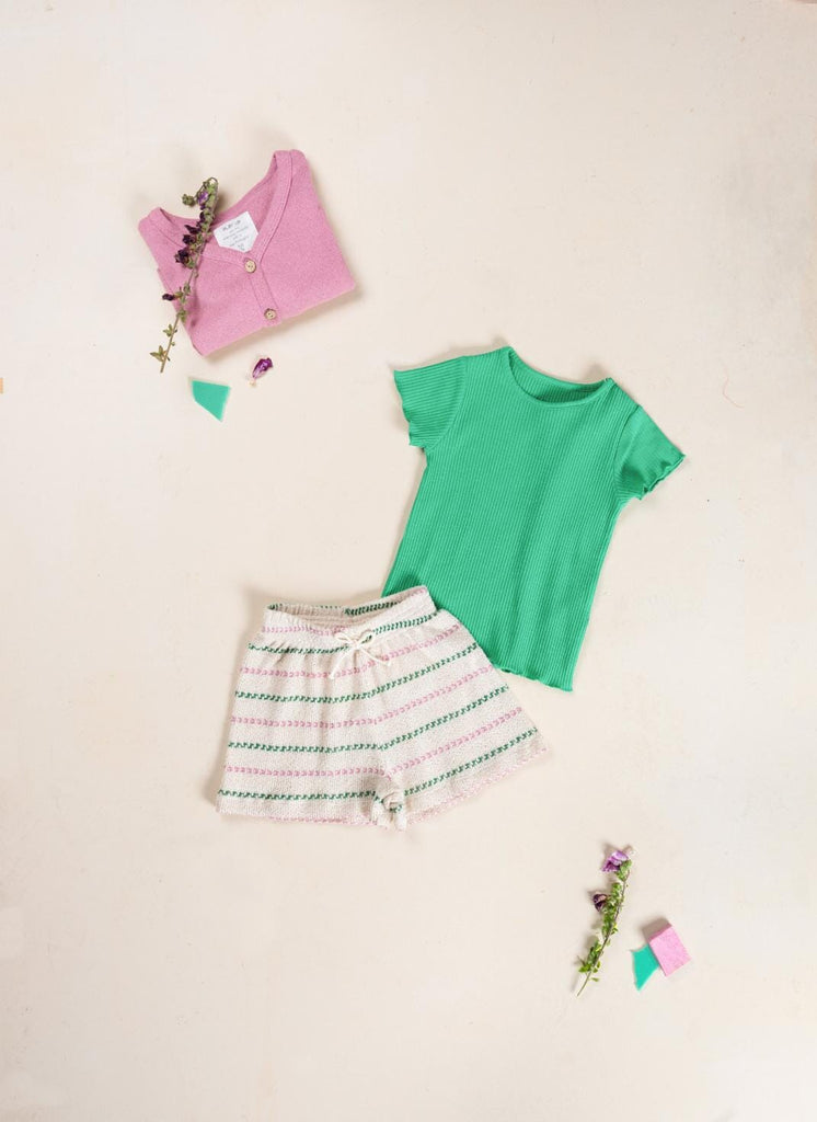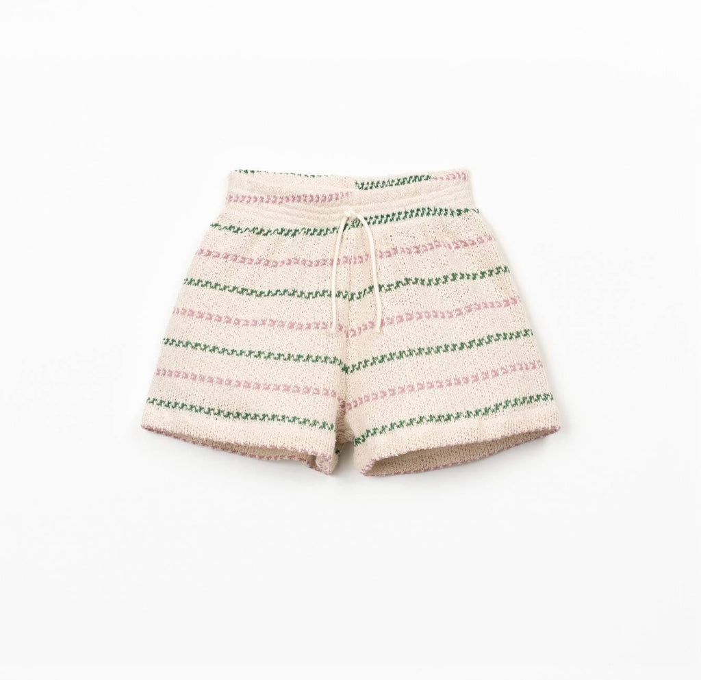Short met roze en groene strepen van Play Up. Deze short heeft een elastische taille, met een koordje vooraan. Hij is gemaakt uit heerlijk zachte, licht getextureerde stof. Het bevat Re(Play)-garen dat afkomstig is van de recycling van Play Up's post-productie afval.