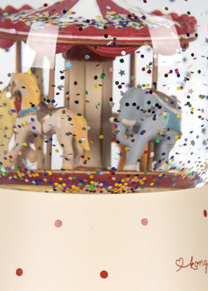 Sparkling glow ball van Konges Sløjd. Deze glazen sneeuwbol is prachtig en ongelooflijk gedetailleerd. Binnenin zit een carrousel en glitters die zachtjes ronddansen als je ermee schudt. Dankzij de handige lichtfunctie, is hij ook ideaal om als lamp te gebruiken. Een echt collector's item dat in elke kinderkamer past.