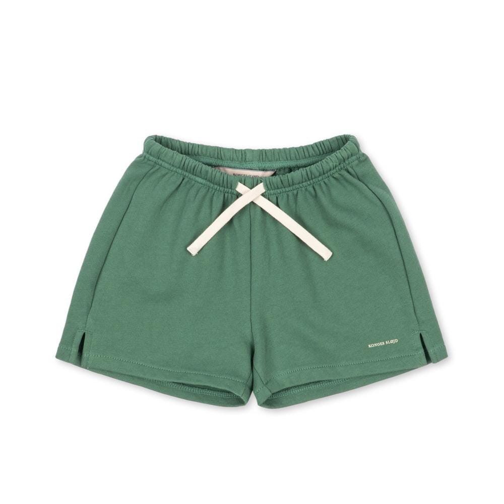 Spotty Short in de kleur Dark ivy van Konges Sløjd. Zachte sweatshort met een casual pasvorm, een comfortabele elastische tailleband en een verstelbaar trekkoord voor extra draagcomfort. Ontworpen met subtiele zijsplitten en een enkele achterzak.